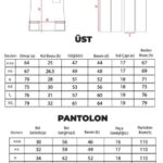 Pantolon kesimi, yüksek bel ve dar paçadır. Beli komple lastiklidir ve bel ayarı için dokuma şeritten bağcığı vardır.